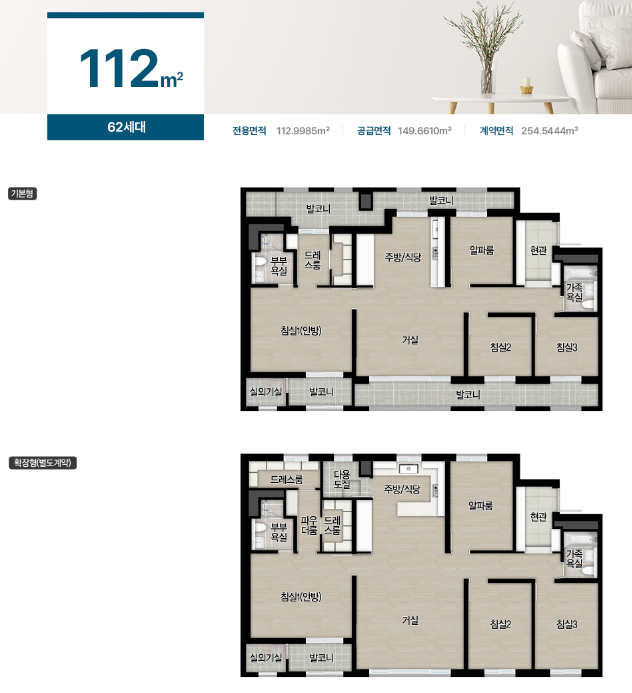 - 공급세대 : 총 2633세대 (39㎡~112㎡ 11개 타입)